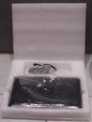 Beim Aufmachen fällt mir auf das das Gerät mindestens schon einmal auf war: Die Lasche ist eingerissen. Im inneren findet man dann eine sehr einfach aus mehreren lagen aufgebaute Schaumstoffverpackung mit 2 Fächern: Eines fuers Netzteil, das Andere für den Netbook und eine Bedienungsanleitung.